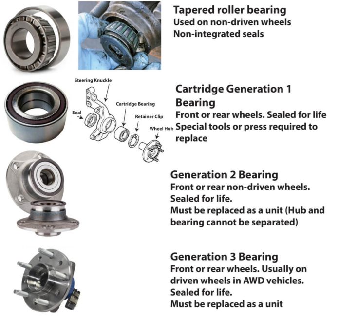 Whether the bearings are tapered roller, cartridge or hub style, they’re all protected against water and debris ingress by grease seals. Older tapered roller bearings used non-integrated seals that install into the rotor. Newer bearings have integrated seals in the cartridge or hub.